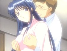 Later, in the Vice Principal’s office, Yumi is fondled by the VP again before they force her onto Katsutoshi to let him feel her inside. Katsutoshi doesn’t want to, but the two men force Katsutoshi into losing her virginity to Yumi and gangbang her at the same time. Back at home, Keiko knows something is going on and confronts Katsutoshi about it. Katsutoshi says he’ll reveal what is going on, but only if Keiko gives herself to him. For Yumi’s sake, Keiko offers herself to Katsutoshi.